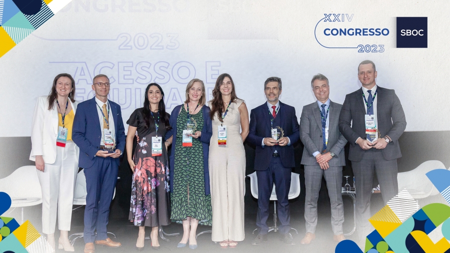 Os troféus foram entregues pelo presidente da SBOC, Dr. Carlos Gil Ferreira, pela diretora-executiva, Dra. Marisa Madi, e as diretoras Dra. Andreia Melo, Dra. Anelisa Coutinho e Dra. Angélica Nogueira.