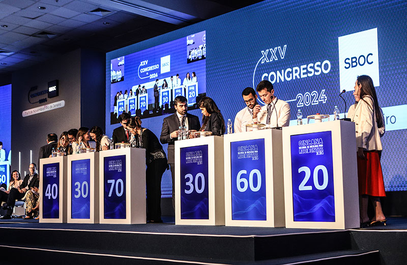 No último dia, o Congresso SBOC 2024 teve como destaque uma sessão dedicada ao protagonismo feminino na especialidade, com palestras sobre os desafios enfrentados pelas mulheres para a progressão de suas carreiras. No encontro, também foi lançado o manual "Liderança Feminina SBOC". Além disso, o dia teve foco também nos jovens oncologistas, com sessões que discutiram os principais anseios desses profissionais, abordando mercado de trabalho, saúde mental, oportunidades na carreira, entre outros temas. Houve ainda, entre outras atividades e discussões científicas, a final ao vivo da Gincana Nacional da Oncologia para Residentes da SBOC. Confira as fotos do dia: