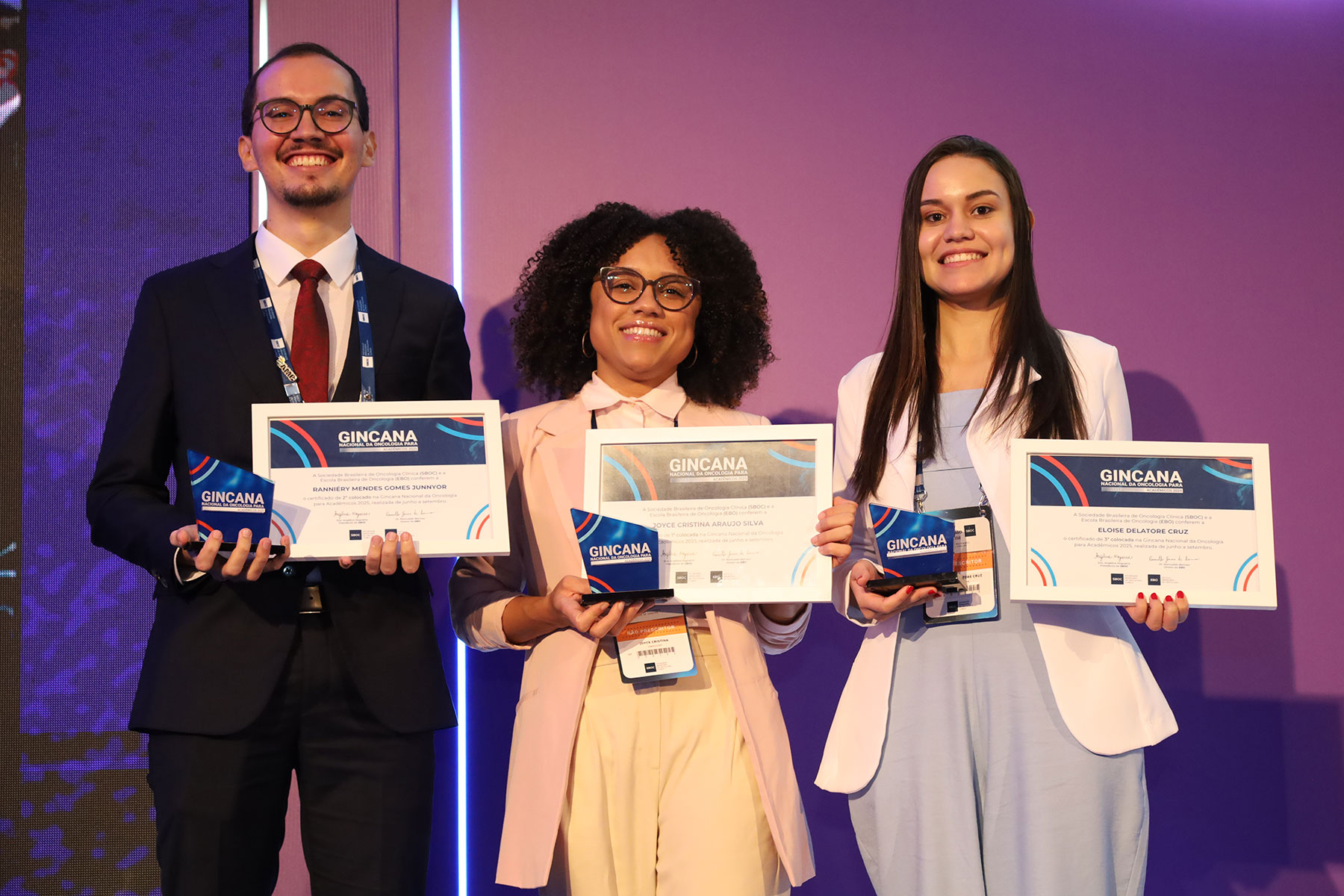 Na sessão, os vencedores da Gincana Nacional da Oncologia para Acadêmicos 2025 também receberam seus troféus. Foram eles: Joyce Cristina Araujo Silva (Uninove), Ranniéry Mendes Gomes Junnyor (UFPB) e Eloise Delatore Cruz (UEL).