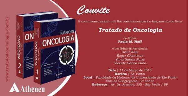 A Editora Atheneu, cuja especialidade é publicar livros na área da medicina e saúde, realizará a sessão de autógrafos do livro: Tratado de Oncologia, do Editor Prof. Dr. Paulo M. G. Hoff e Editores Associados Prof. Dr. Roger Chammas, Prof. Dr. Artur Katz e Profa. Dra. Yana S. Novis.